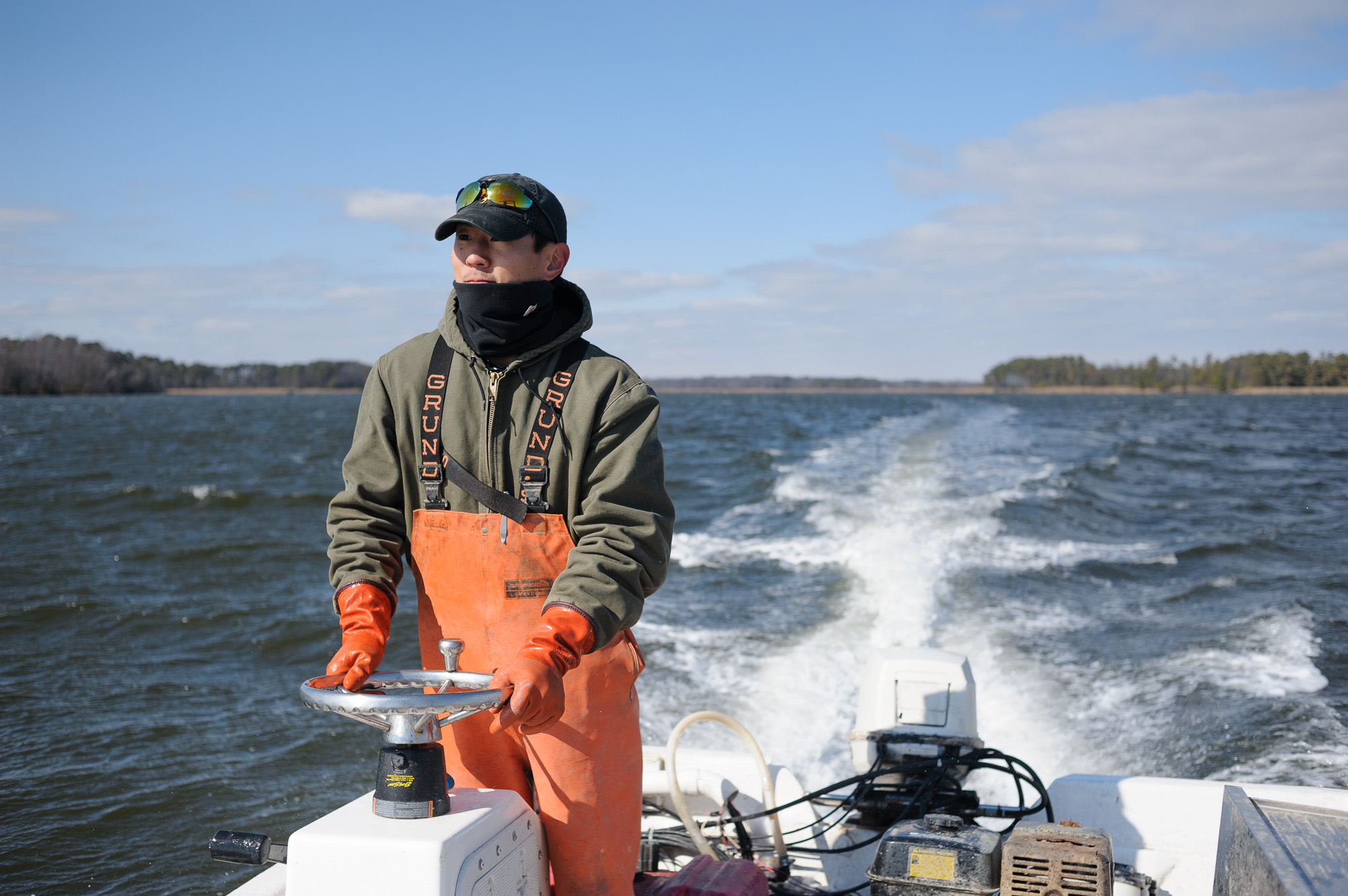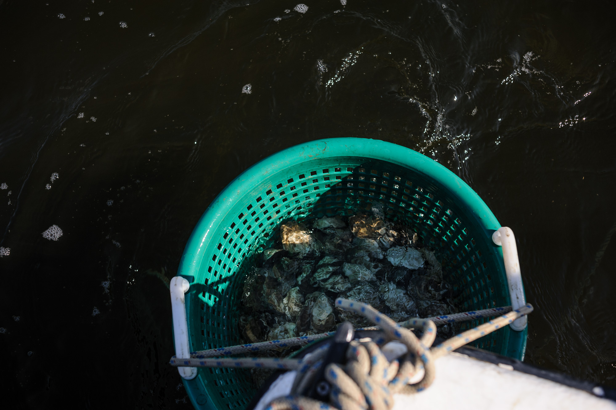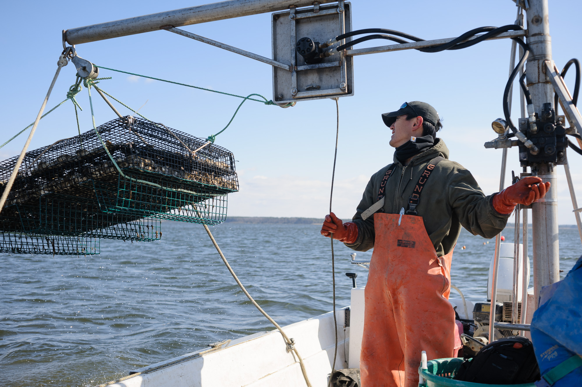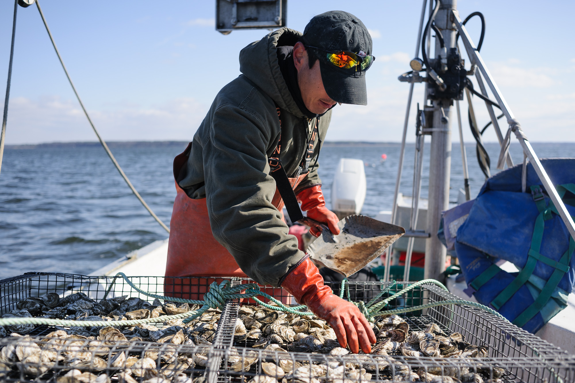 I made a number of visits to the farm over the course of a year to document the work that goes into building an aquaculture farm. Scott designed and built a number of the mechanical systems that play an integral role in the farm’s operations. There are also the natural elements to contend with; scorching heat and bitter cold. And wind. Lots of wind. This tough work is something to appreciate the next time a dozen oysters hit your table.